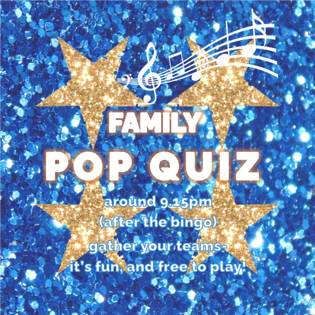 After the children’s fun and games with Ian and Julie, and bingo, it’s the family pop quiz in Oscar’s (not before 9pm)